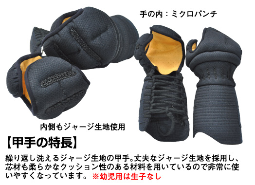 甲手を「洗えるジャージ甲手」に変更した防具セット |