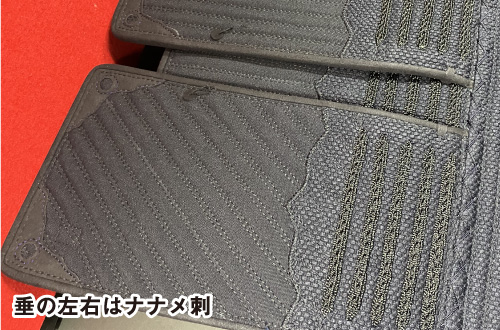 | 1本足・本雲S字飾・濃紺ナナメ刺・革綴じ返しべり仕立て |