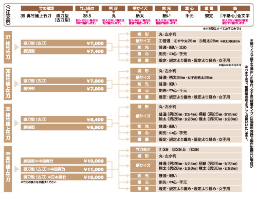 ※竹刀の完成品をご希望の場合は、竹のみの金額に仕立代をプラスとなります。 |