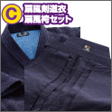 藍染木綿のように見える剣道衣・袴「扇風」と 同じ生地を使用。