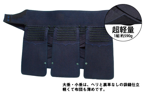 大垂・小垂は、ヘリと裏革なしの袋縫仕立 軽くて布団も薄めです。 超軽量:1組約590g |